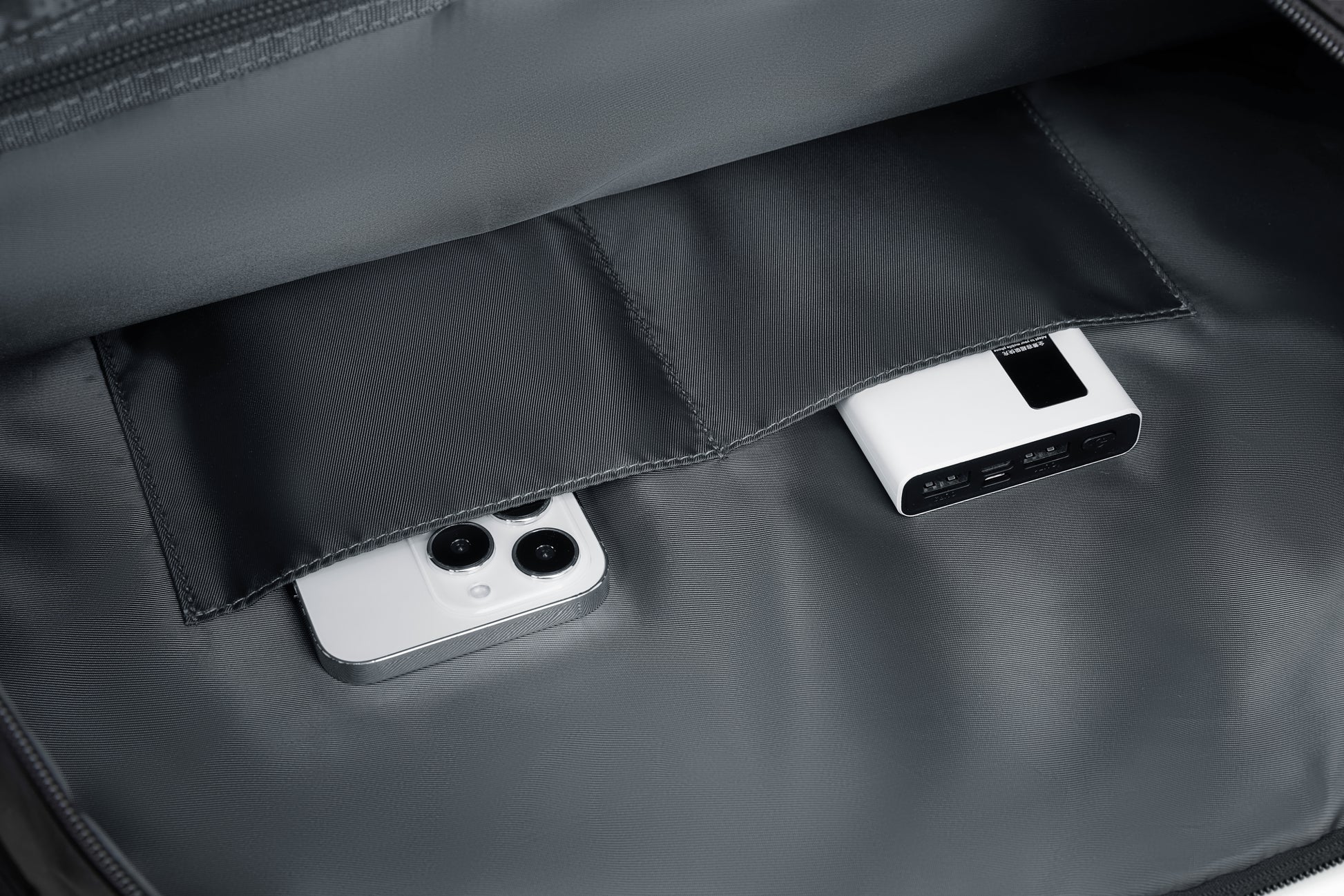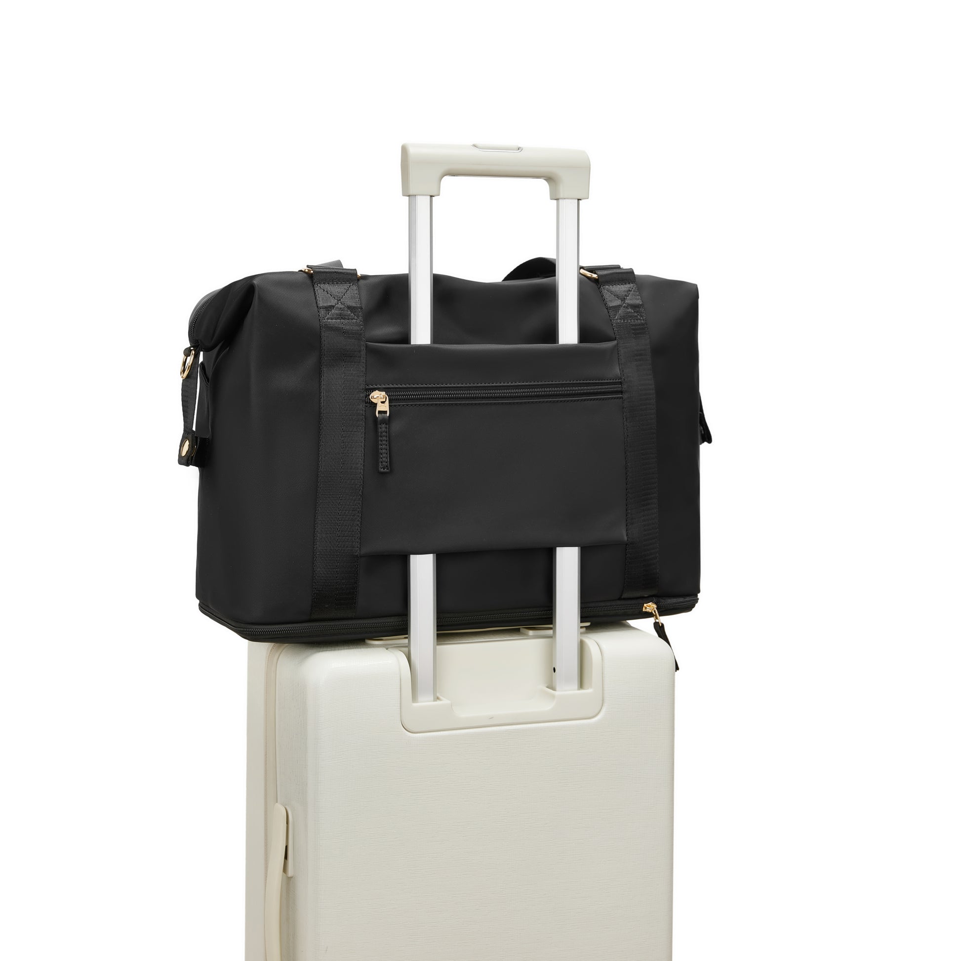 Stor kapacitet med flere rum – hovedrum plus lomme til sko/vådt tøj og lommer til småting sørger for orden.