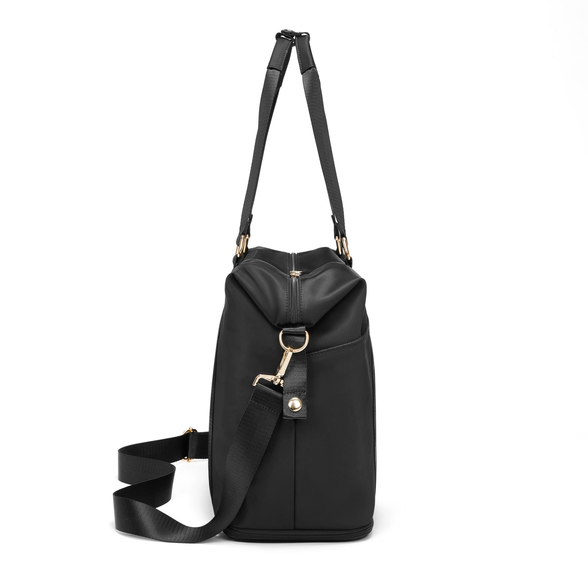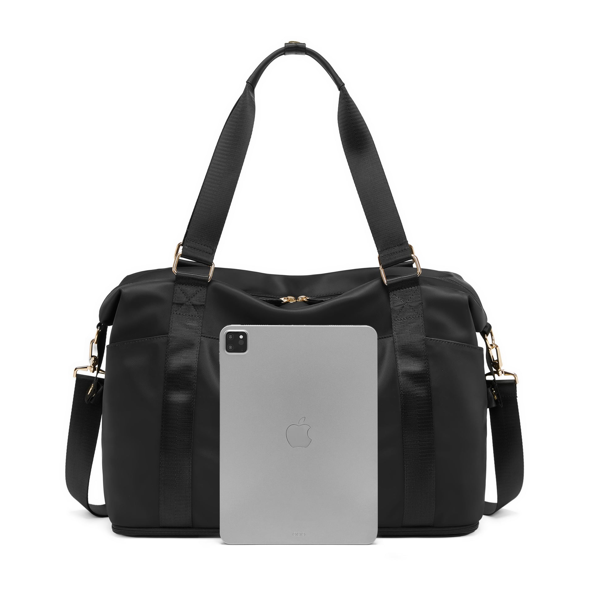 Den er designet med vandafvisende materiale, stærke håndtag og remme, og flere rum til organisering af tøj, sko og udstyr. Tasken er rummelig uden at være uhåndterlig, og detaljer som separate rum gør den ideel til både vådt og tørt indhold.