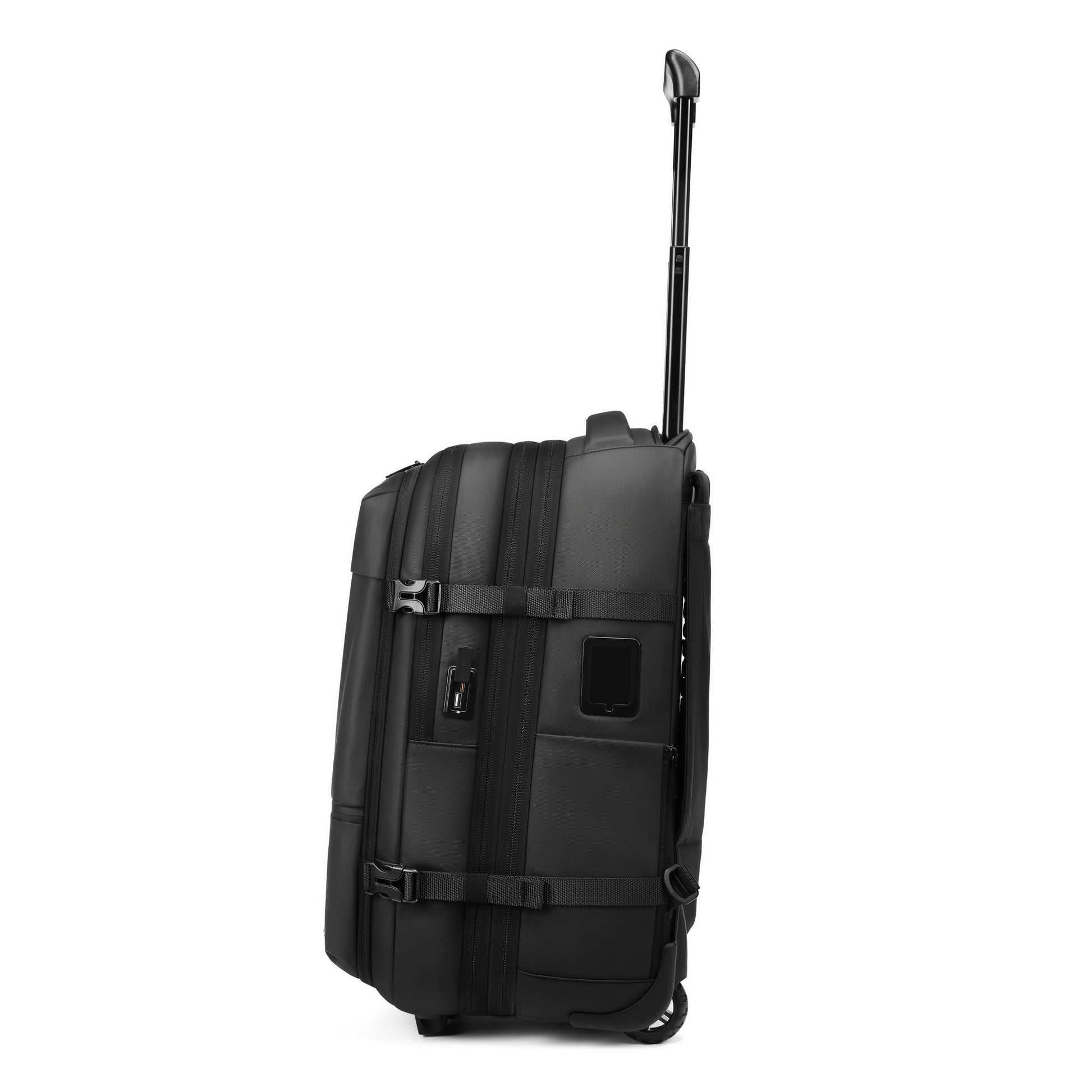 Med et slankt, stilrent design passer den perfekt som carry-on til flyrejser og er lige så praktisk til tog- og bilrejser. De aftagelige skulderstropper og udtrækkelige teleskophåndtag giver fleksibilitet, uanset om du vil bære eller trække tasken. Fremstillet i vandafvisende og slidstærke materialer, med polstret laptop-lomme og flere organiseringsrum – ideel til både arbejdsrejser og weekendture.