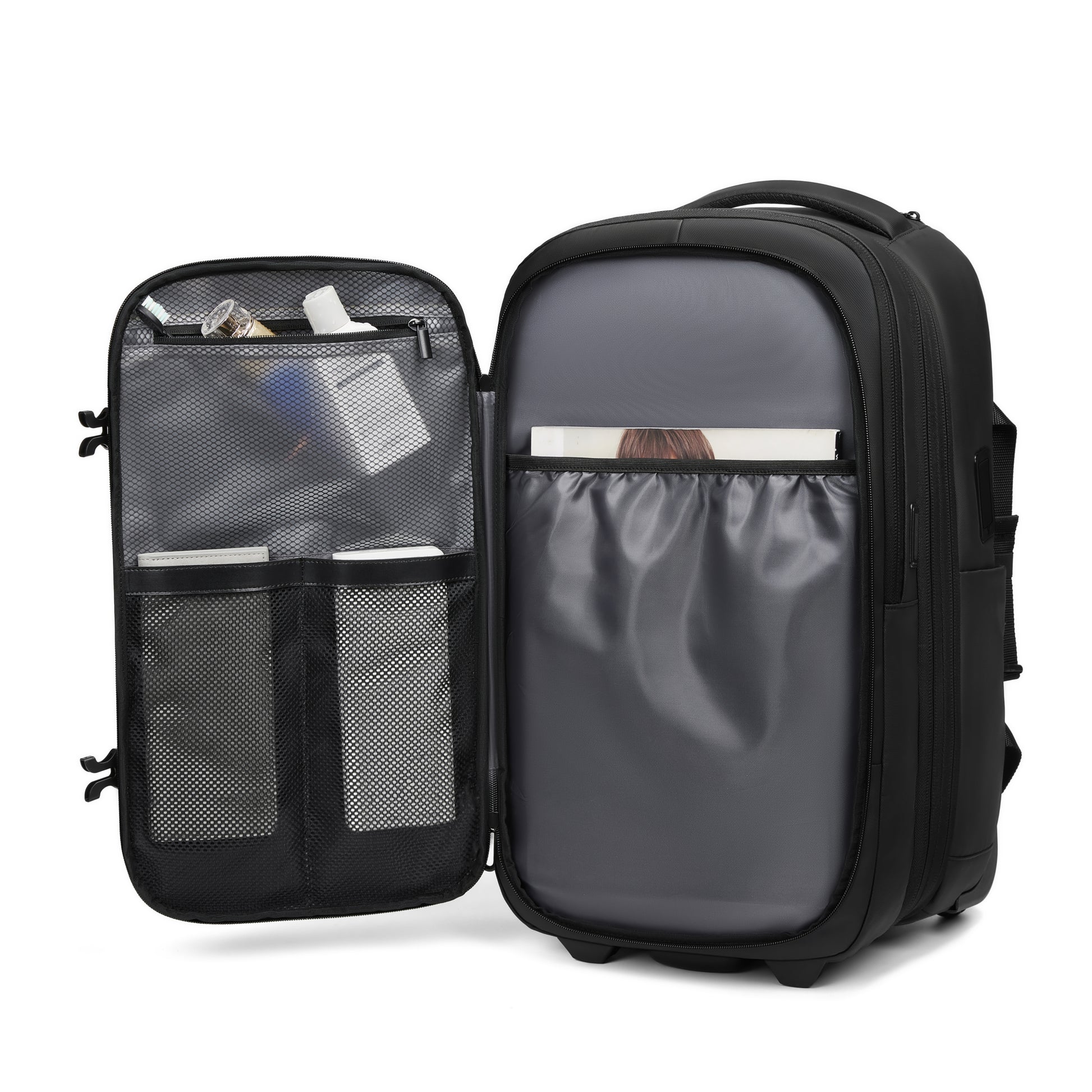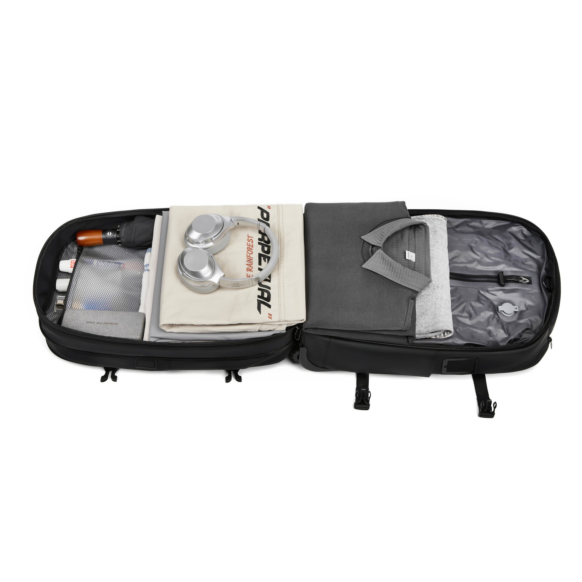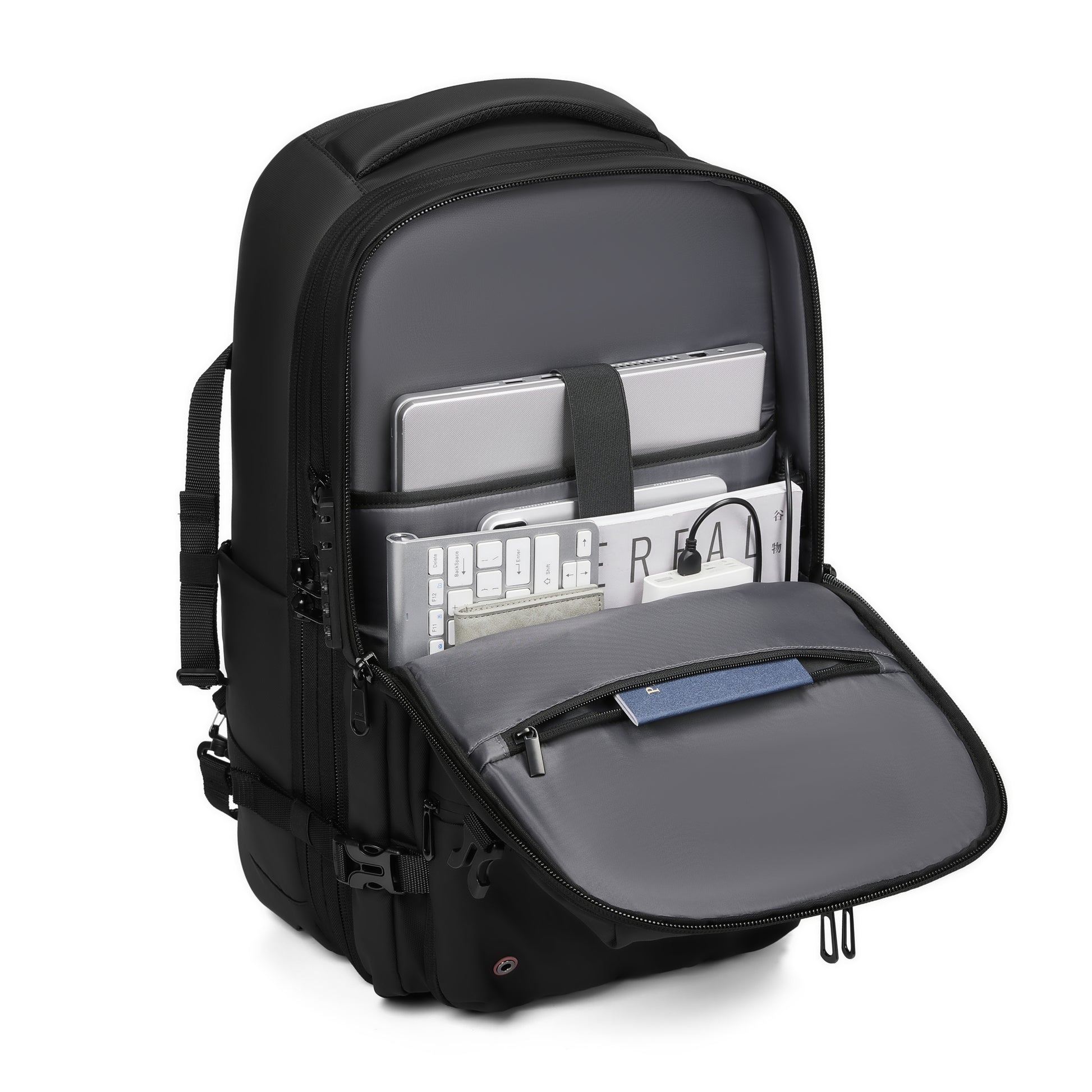 Rejs smartere med NordicHike Luxury Vacuum Travel Backpack – den ultimative kombination af rygsæk og rulletaske til moderne forretningsrejsende. Tasken har et indbygget vakuumsystem med pumpe, der gør det muligt at komprimere tøj og udstyr op til 50 %, så du får maksimal plads uden ekstra vægt.