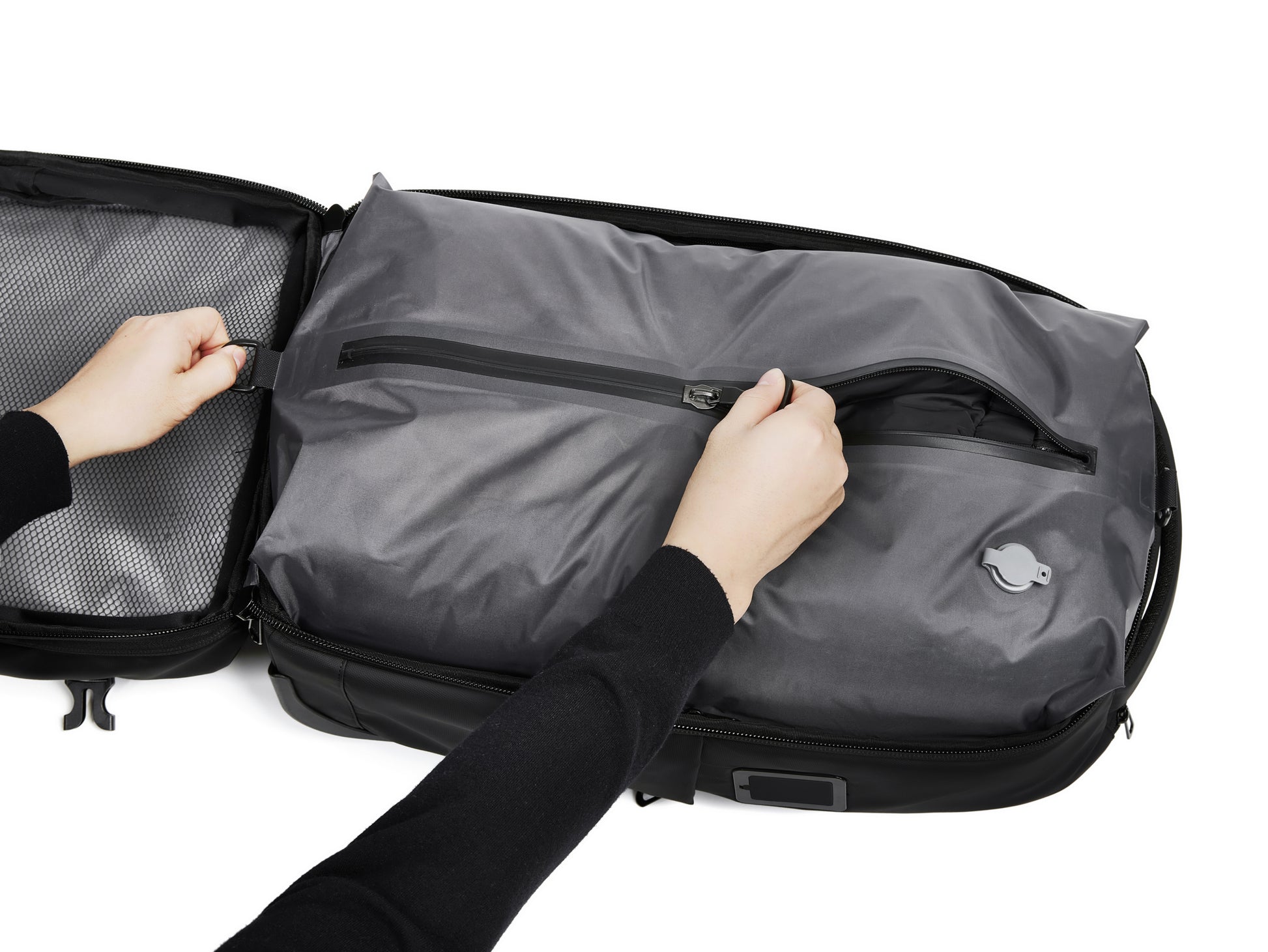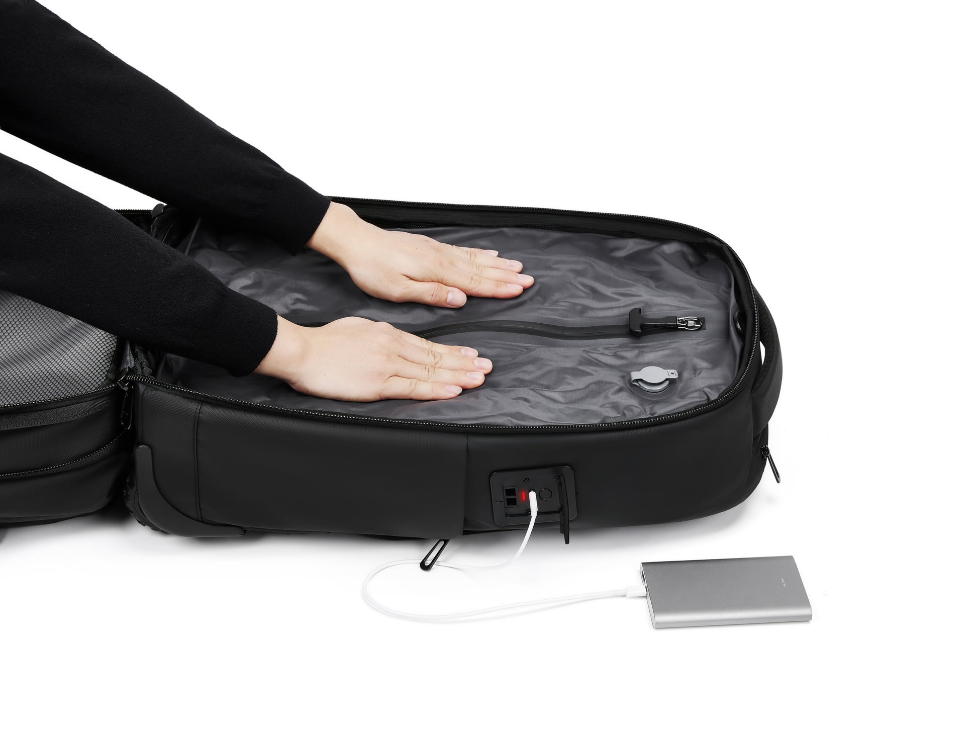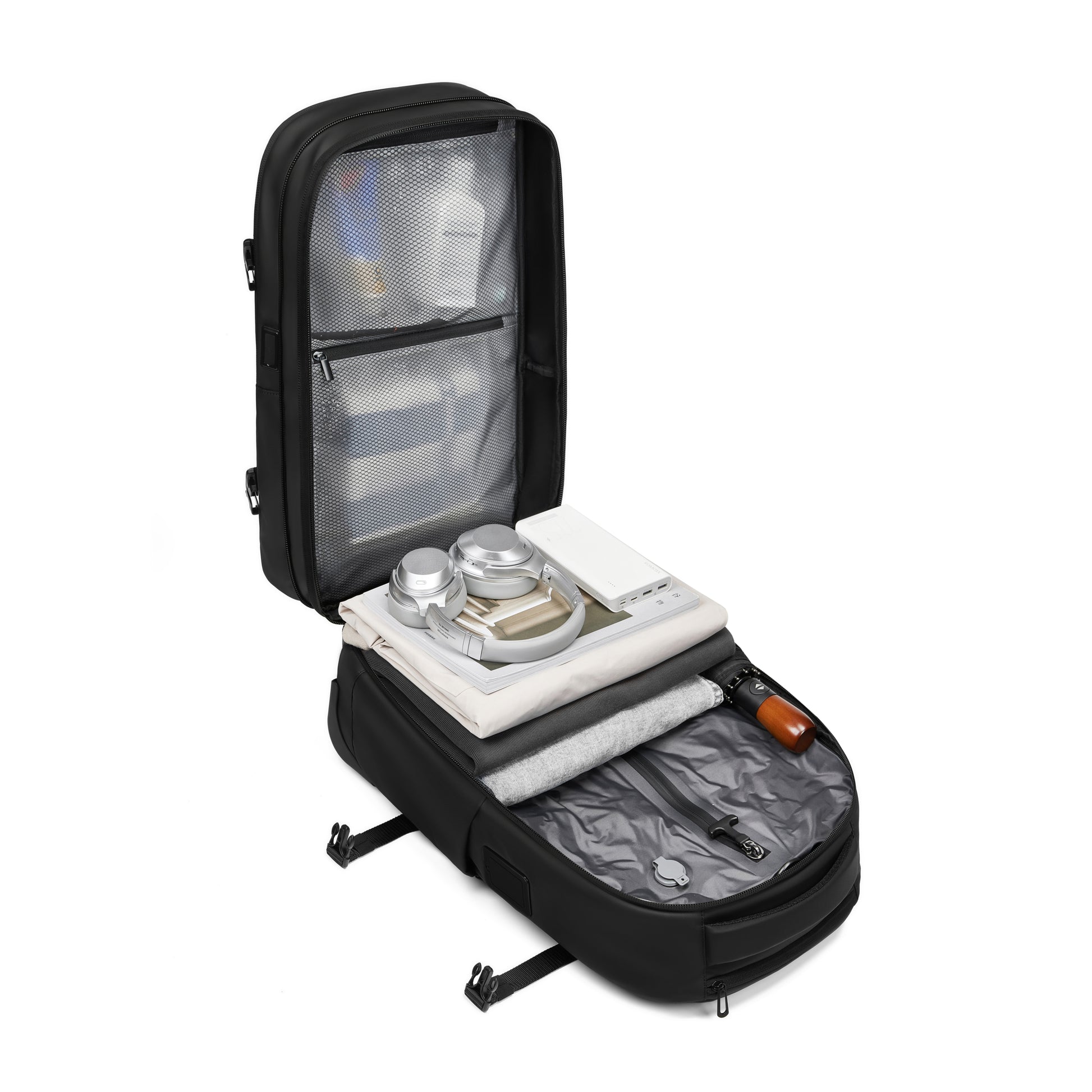 Rejs smartere med NordicHike Luxury Vacuum Travel Backpack – den ultimative kombination af rygsæk og rulletaske til moderne forretningsrejsende. Tasken har et indbygget vakuumsystem med pumpe, der gør det muligt at komprimere tøj og udstyr op til 50 %, så du får maksimal plads uden ekstra vægt.